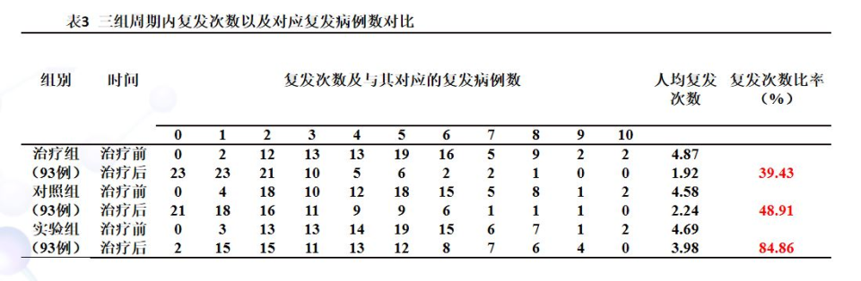 复发率 = 治疗后人均复发次数 / 治疗前人均复发次数 ×100%。